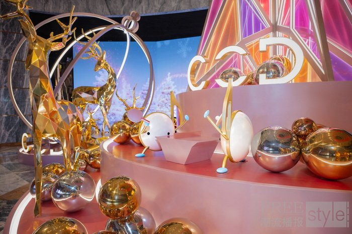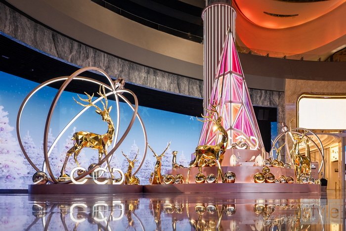 与此同时,新濠天地也对室内空间也进行了精心规划,节日装饰及巧思遍布度假村内多处空间。度假村主入口处,15米宽的巨型圣诞装置惊喜亮相——高达9米的未来感粉金色圣诞树与金色的驯鹿相伴而立;“动感音符小精灵”穿梭其中,仿佛在现代感城市建筑中闯入了一群来自童话世界的精灵,洋溢着浓郁的节日魔幻氛围,吸引宾客打卡留影。