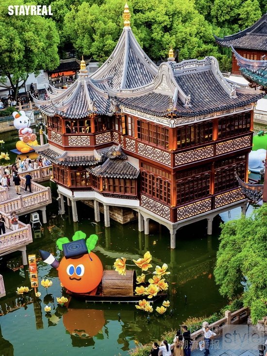 过去一年间,STAYREAL以MOJO FAMILY为核心,展开一场贯穿多城的漫游计划。自2024年11月《天空卜览 SKY MOJO EXPO》于上海东方明珠塔首发以来,卜卜与MOJO FAMILY成员陆续巡游至多个文化地标:在世界文化遗产杭州西湖呈现《西湖卜舟》,于百年历史的北京北海公园打造《北海卜览》,并在承载上海文化底蕴的豫园推出《豫见好运卜览》。每一站均通过艺术装置与城市文化的深度结合,讲述独具特色的城市情绪故事。