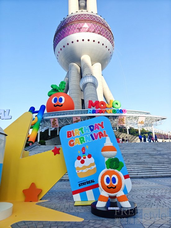 2024 年 11月,STAYREAL携MOJO FAMILY『魔魔胡胡胡萝卜(昵称:卜卜)』开启首次《天空卜览 MOJO EXPO》登塔冒险,用它独特的治愈魅力,为申城带来了一场别开生面的橙色惊喜。2025年11月,开启任意门遨游世界一圈的『卜卜』带着一年的温暖回忆,全新升级的《天空卜览2.0·逐梦卜览》艺术装置重登上海东方明珠电视塔:『卜卜』与MOJO FAMILY成员们踏上通往梦想的彩虹阶梯,回到梦想起点的地方,每一级阶梯都记录着离开后的成长,每一色都闪耀着再出发的勇气。站在曾经眺望世界的高度,『卜卜』和MOJO FAMILY亦开启了一个更宏大的计划——打造属于所有人的『MOJO HAPPY WORLD』—— 一个让快乐不只是情绪,而是长成为力量的地方!此祝东方明珠11月18日和魔魔胡胡胡萝卜11月20日生日快乐!两个闪闪发光的日子,因友谊而彼此照亮。
