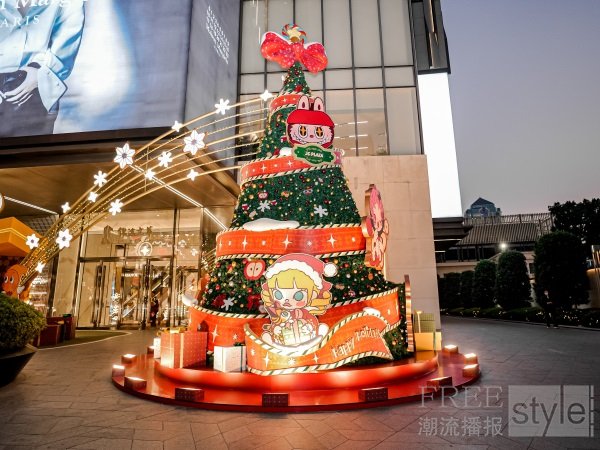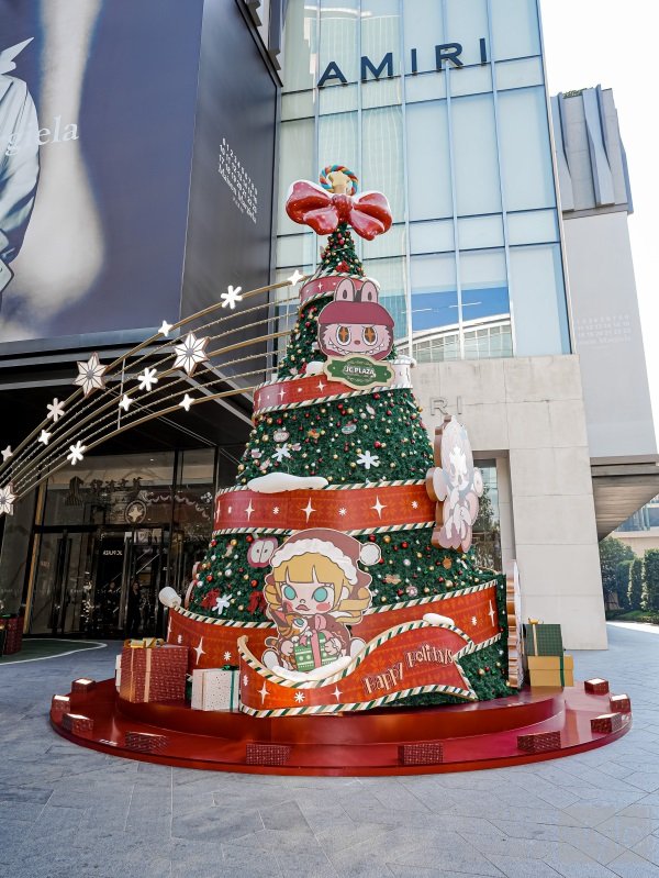- 站点①绮愿星光树(西侧外广场):作为入口装置,“绮愿星光树”像是一封送给每位来访者的节日邀请函。星光树以礼物缎带、泡泡玛特可爱小伙伴们层层环绕,满树皆是节日心意与小小惊喜。从这里踏入 JC 冬日星光绮旅,开启一段充满欢乐与美好的冬日旅途。