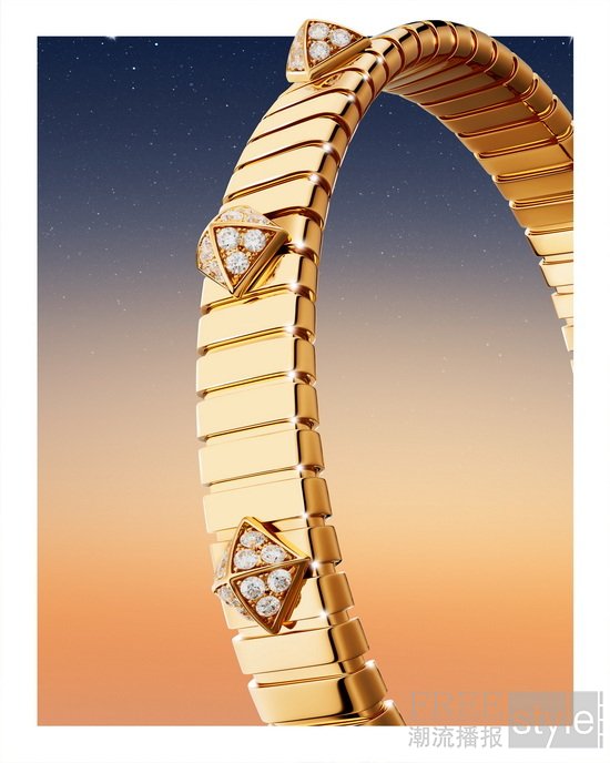 欢庆此刻,利落线条迸发焕新力量。宝格丽Serpenti Viper系列手镯将灵蛇的蜿蜒姿态凝于腕间,错落有致的模块化设计让简洁的线条与璀璨钻石巧妙交织,绽放夺目光芒。宝格丽Tubogas系列手镯采用品牌经典的Tubogas工艺,铸就光滑而富有韧性的金属链带,18K黄金材质将罗马金色暖阳的耀眼光芒汇聚于此,搭配钻石钉饰,于叠戴中释放从容风采。
