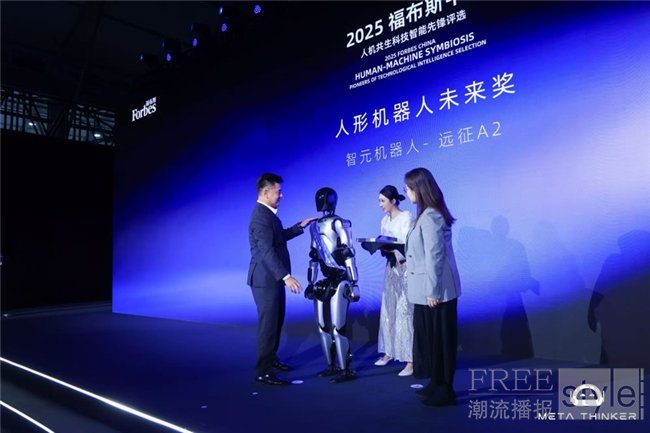 值得一提的是,该奖项是智元机器人继2025年再次荣获福布斯中国创新力企业50后,在“人机共生”领域再获殊荣,标志着智元机器人的技术领先性与商业化前景获得了国际权威商业领域的高度认可。目前,本次评选的颁奖典礼已于12月4日在《METATHINKER人机共生》全球机器人博览艺术展期间隆重举行。