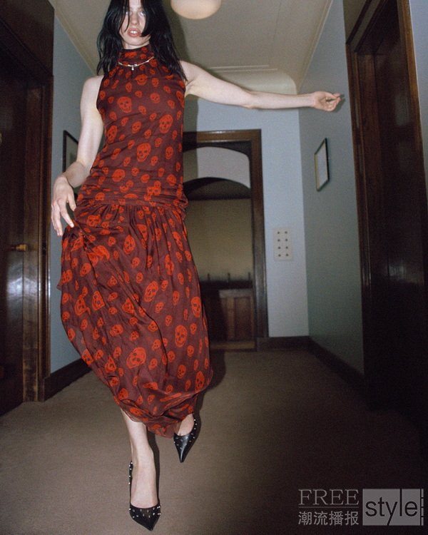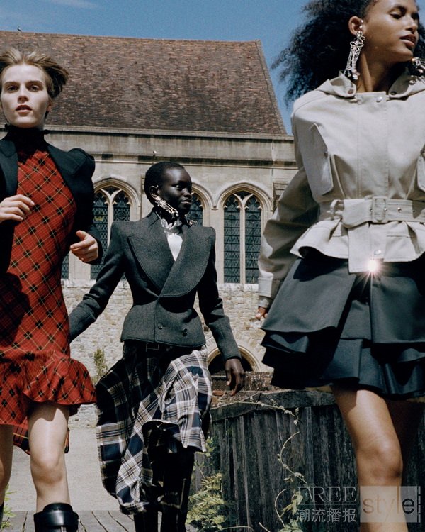 品牌档案馆中的经典MacQueen格纹与薄纱花卉被重新解构,让位于自然主义的现代风格。