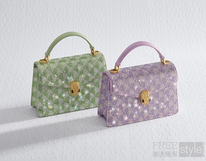 此外,宝格丽工匠运用水晶密镶工艺,为Serpenti Forever Top Handle迷你手提包手工镶嵌逾10,000颗水晶,以宛若珠宝的夺目光华映衬“Calla”图案,凸显整体设计的雅致韵味。每只包袋需耗费逾十小时匠心打造:工匠借助模板于麂皮包身之上分区镶饰颗颗水晶,再采用热压定型,之后沿边缘进行细致入微的手工润饰,以确保呈现熠熠生辉的视觉效果。标志性蛇首搭扣受20世纪60年代Serpenti系列珠宝设计启发而创作,饰以采用“钻石切割”技艺润饰的镌刻鳞片,呈现像雪花状钻石一样闪闪发光的粒面纹理,为包袋更添闪耀光彩。Serpenti Forever Top Handle迷你手提包将推出银色搭配浅橄榄石色与银色搭配浅紫水晶色两种款式,并将于2026年2月起正式发售。