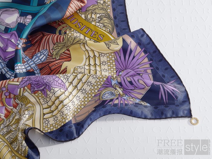 在织物领域,宝格丽推出全新创意主题——“珍奇百宝屋”(Cabinet des Curiosités),回溯品牌本源,致敬索帝里欧·宝格丽先生(Sotirio Bulgari)早年于康多提大道(Via Condotti)开设的“老古玩店(Old Curiosity Shop)”。彼时,这家“老古玩店”不仅出售珠宝,更荟萃古董、装饰品与各式珍贵物件,宛如一座藏满世间奇珍异宝的百宝箱,静待世人探索。为颂扬宝格丽通过卓越手工艺缔造视觉奇迹的匠心,此次主题将宝格丽标志性意象与罗马建筑元素巧妙组合,幻化成一件件珍贵藏品精心陈列于想象中的“珍奇宝盒”内,使每一件丝织品都化身为可随身佩戴的“博物馆”,承载着品牌的深厚传承与精髓。