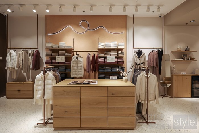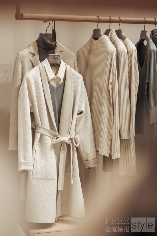 店内陈列囊括男女装全系列产品,完整呈现品牌标志性的材质美学。从轻盈如云的 Ultrafine 超细羊绒系列到触感细腻的 Ultrasoft 超柔羊绒系列,各类天然织物以简约而考究的形态,于空间中静述匠心本质。