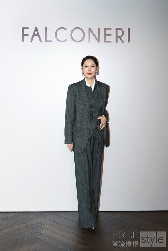 演员海清身着 Falconeri 2025 秋冬系列人字纹套装