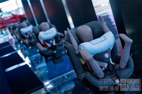 当全场闪光灯聚焦于“时光隧道”动态装置,一部打开慢动作特效的科技大片正精彩上演。汽车高速行驶发生碰撞后,好孩子智能气囊安全座椅毫秒级响应并自主决策,对严重事故即刻启动气囊防护:0ms时刻,碰撞刚刚发生;15-20ms,ECU气囊控制器发出点火信号,30ms气囊完全充满;45-50ms,充满气的气囊与孩子头部相遇,对孩子头颈形成有力支撑;80ms-100ms,气囊变形到最大程度,孩子头部运动到最前位置;100-200ms,孩子安全无恙,碰撞过程结束。原本晦涩的安全专业知识,通过沉浸式动态呈现秒变直观感知,让追求育儿生活品质的年轻父母一眼看懂科技守护的硬核与酷炫——有气囊,更安全!