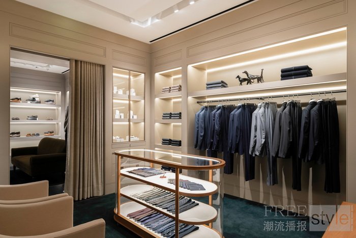 整体空间设计灵感,源自dunhill绅士的雅致世界及品牌标志性的伦敦旗舰店Bourdon House,将鲜明的英伦格调与现代精致感融为一体。考究的门面开启连贯空间,以天然木材、奢华织物及定制家具铺陈其间。漆木镶板与弧形玻璃展柜,则承袭dunhill巴黎Rue de la Paix(和平街)精品店隽永细节;华美的色彩点缀与复古定制家具相映成趣,彰显非凡气度。特设私密里间,为全定制剪裁及量身定制服务,打造灵动谧境。