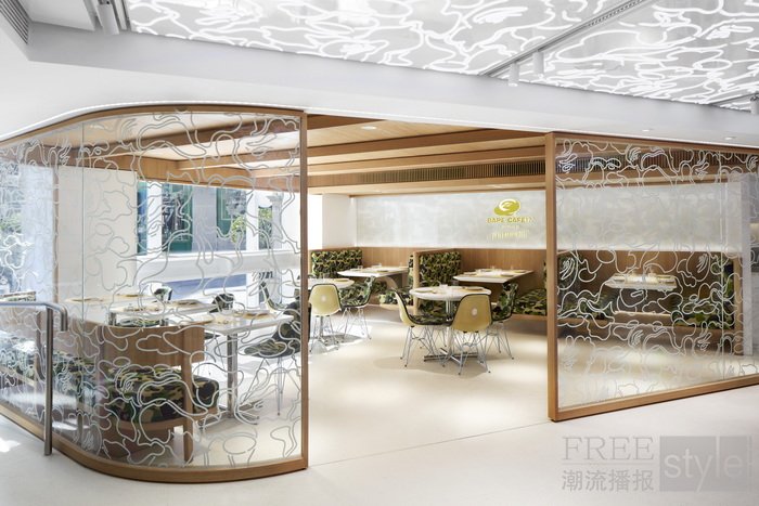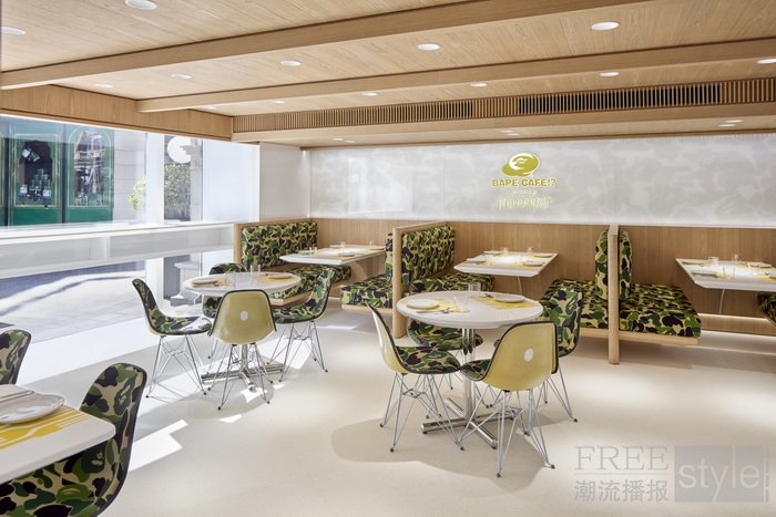 同步BAPE®携手东京人气甜品店 FLIPPER'S开设主题餐厅「BAPE CAFE!?®」,并于12月12日登陆,风格鲜明的室内外用餐区均铺设经典ABC CAMO桌椅,带来从服饰到餐饮的全方位潮流生活体验。