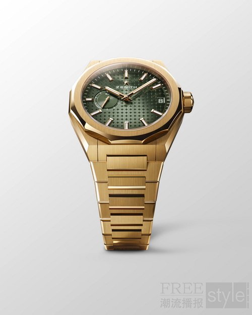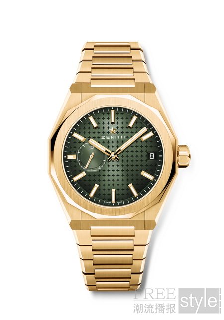 ZENITH真力时DEFY巅峰系列天际腕表黄金款,橄榄绿太阳纹表盘与温暖黄金材质交相辉映