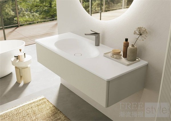 以现代设计语言诠释白色的恬静,可将哑光陶瓷表面与流畅灵动的轮廓相结合。德国唯宝Antao | 安岛系列中不规则的露珠形设计,搭配天然纯净的石白色表面,便恰如其分地营造出自然效果。