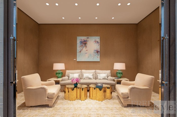 漫步店内,更多艺术佳作与空间和谐相融,其中包括一盏1900 年的蒂芙尼山茱萸古董台灯,以及中国艺术家王茜瑶的作品《Endless Blue No. 3》。