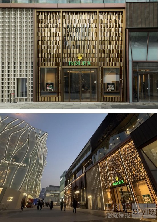 全新精品店选址三里屯太古里繁华街区,其设计方案由劳力士日内瓦总部亲自主导,旨在打造一座与其品牌格调相匹配的时计殿堂。劳力士更创新性地将品牌经典“三角坑纹外圈”设计应用于建筑外立面,为时尚的太古里街区注入了一抹历经时光淬炼的尊贵气质。