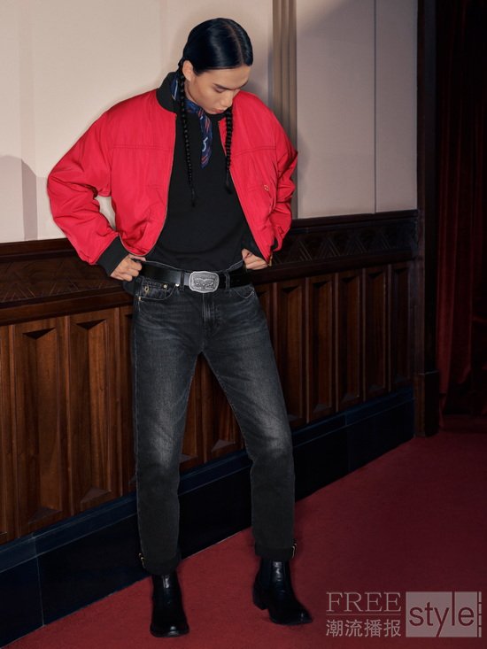 男装系列以可双面穿的飞行员夹克为主打,兼具百搭与细节感。仿羊羔绒Type III丹宁夹克与无衬里宽松版型 Type III丹宁夹克重新演绎品牌经典,以松弛剪裁诠释现代风格。可双面穿长袖衬衫夹克带来层次变化,圆领卫衣与金属光泽蝙蝠标长袖 T 恤为节日造型增添轻松格调。下装包括 578TM 束带牛仔裤、505TM 宽松直筒牛仔裤与 502TM 锥形牛仔裤,兼具舒适与型格,为节日期间的多场合穿搭提供多样可能。