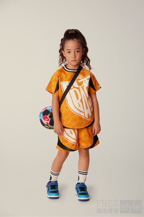 童装运动系列将运动风格与玩味细节无缝融合。以足球运动为灵感打造的球衣延续BAPE KIDS®标志性风格,饰有 BABY MILO®图案与 STA星形徽标,适配孩子们的日常穿搭场景。搭载BABY MILO®串标设计的运动套装,兼顾动作自由度与舒适穿着感;ABC迷彩足球包、帽子与袜子等配饰阵容,更是打造完整运动造型的点睛之笔。