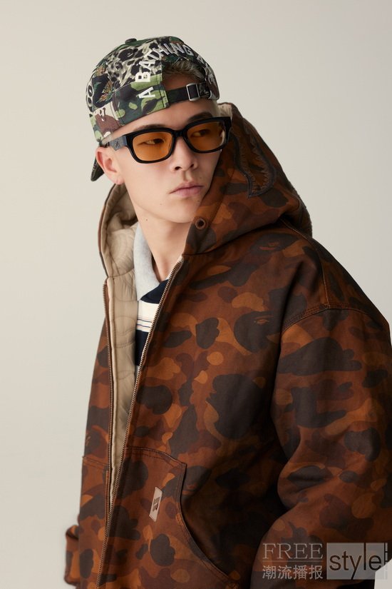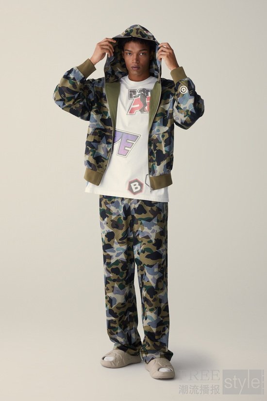 本系列推出的MULTI PIXEL CAMO全新迷彩图案,以像素化设计致敬复古游戏与经典科技;同时带来GLITCH WOODLAND CAMO,通过扭曲手法演绎经典军风美学,传递混沌能量。除了这两款大胆图案外,系列还涵盖将STA标志与1ST CAMO创新融合的单品、BAPE® LEGACY复古棒球夹克,以及受美式漫画启发的BAPEMAN-X连帽衫,网眼眼罩设计赋予其未来主义气息。系列采用工装廓形,结合SOLID CAMO提花与拼接工艺,面料灵感源自门店地毯的FOOTSOLDIER印花工艺,增添层次感与真实质感。