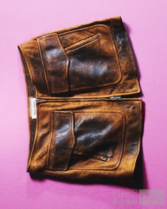 创作伊始,Miu Miu甄选皮革,细究其独特质地,悉心留存天然美感与时光印记。随后,皮革经手工打磨、水洗与刷拭,焕现温润光泽与历史韵致。传统与创新并行,正是Miu Miu品牌内核所在。这一繁复工艺贯穿全品类产品,融入乐福鞋、切尔西靴、系带靴与搭扣靴,Arcadie、Pocket及Wander手袋,飞行员夹克,以及迷你短裤等多元单品。