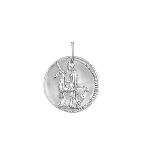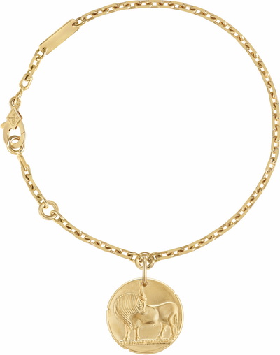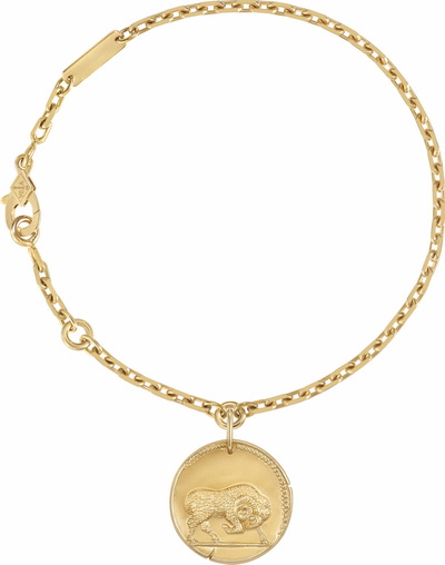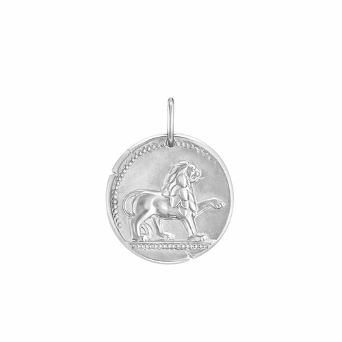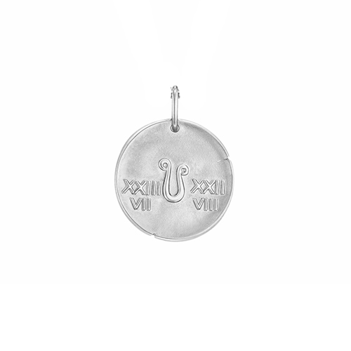 吊坠的两面分别饰以星座图案,以及其代表符号和对应的罗马数字日期,起伏有致的浮雕效果与精巧细腻的黄K金纹理交织生辉。处女座图案以少女与独角兽的意象呈现,白羊座生动刻画了公羊纹理分明的毛发及蓄势待发的雄姿,而狮子座的威严姿态灵感则汲取自古代艺术作品中的雄狮造型。
