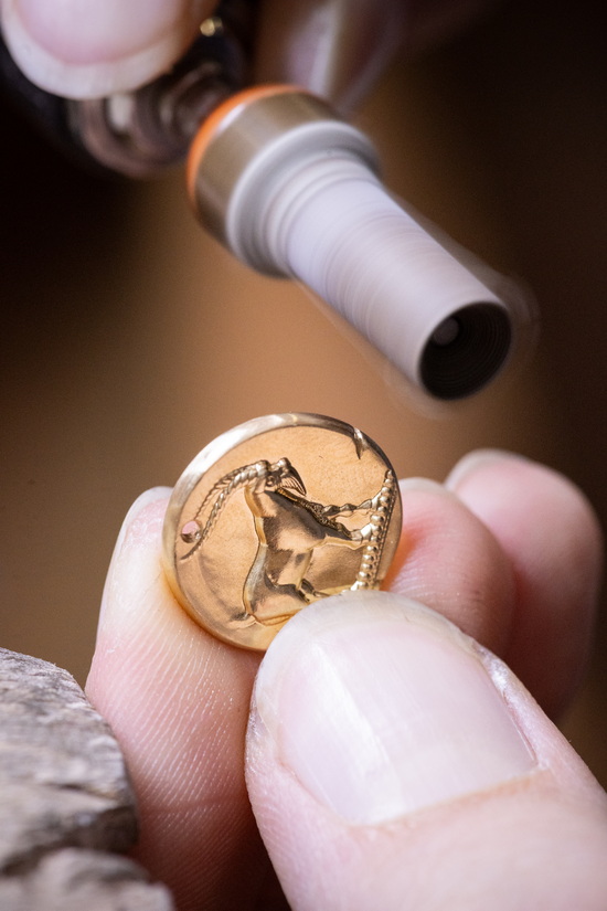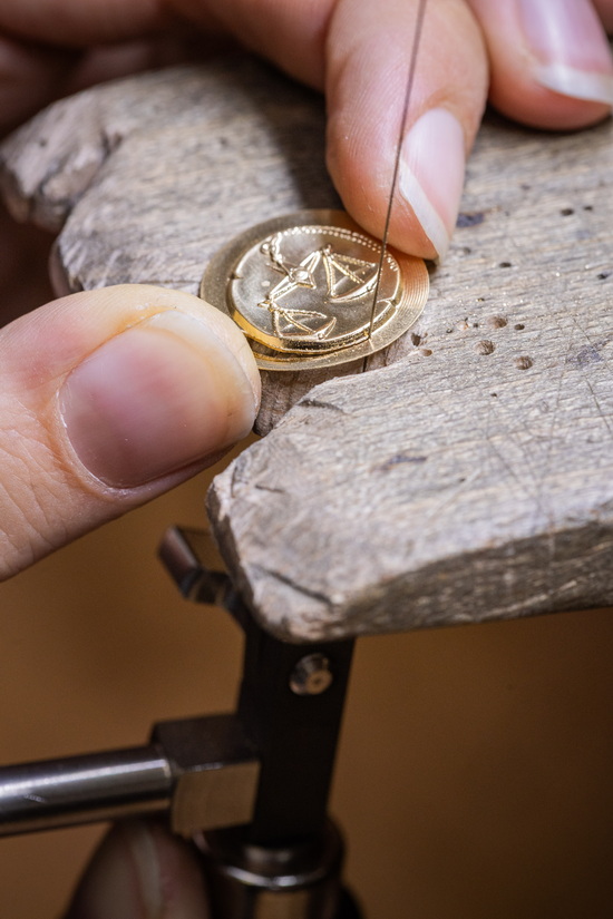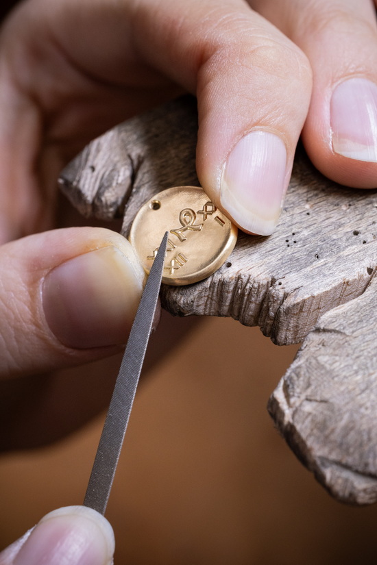 吊坠的图案成型后,金质再经工匠悉心润饰加工,为其镀上精致的光泽。表面的浮雕图案鲜明夺目,经细心抛光的珍贵材质更见耀眼。