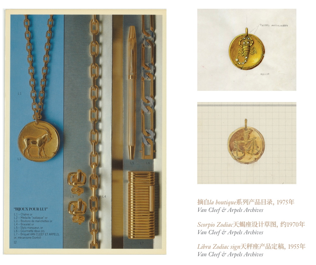 Van Cleef & Arpels梵克雅宝始终对激发其无尽想象的诗意星象情有独钟,以12星座符号为主题的系列早于1950年代便已问世。以星座符号点缀的金币吊坠一经面世,即掀起热潮。作为世家可日常佩戴的La boutique系列珠宝的一部分,吊坠被制成不同尺寸,更化为可互相配搭的吊饰或袖扣。