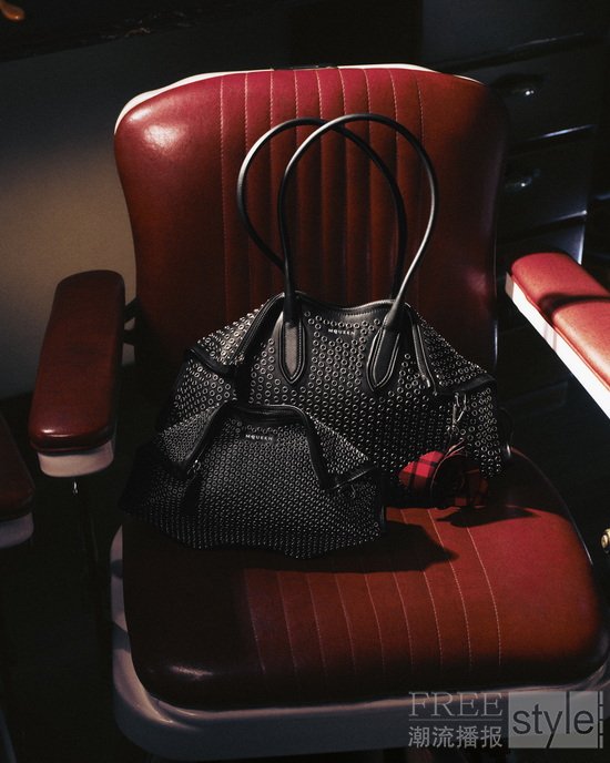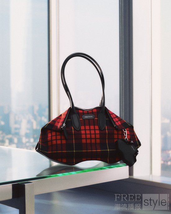 传统与摩登在此碰撞,体现于 2026 早春系列作品中:经典格纹羊毛与皮革相映,搭配流光璀璨的珠宝。丰富的面料肌理层叠演绎,糅合了精妙的立体结构感刺绣、柔软麂皮、抛光金属与剔透水晶。标志性的McQueen廓形亦淋漓展现:精准利落的肩线剪裁与备受瞩目的Manta 手袋。摩登都市的精准型格与雕塑般的艺术美感,于此和谐共鸣。