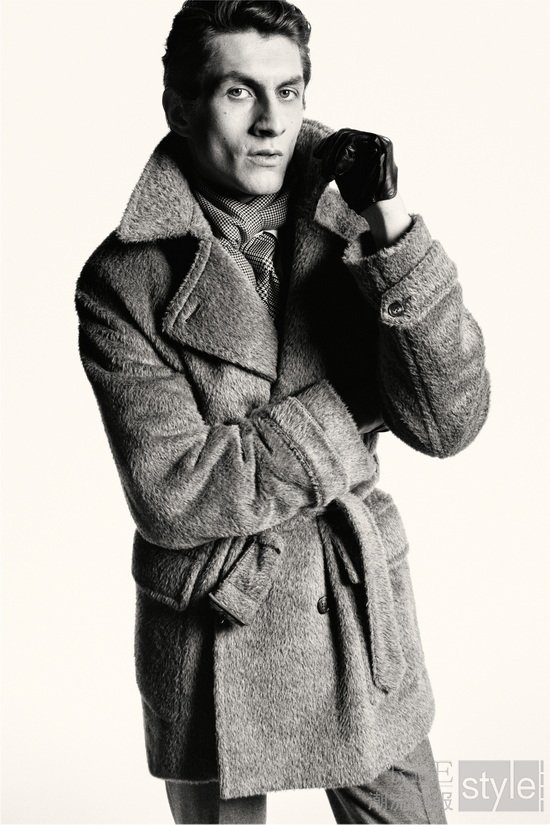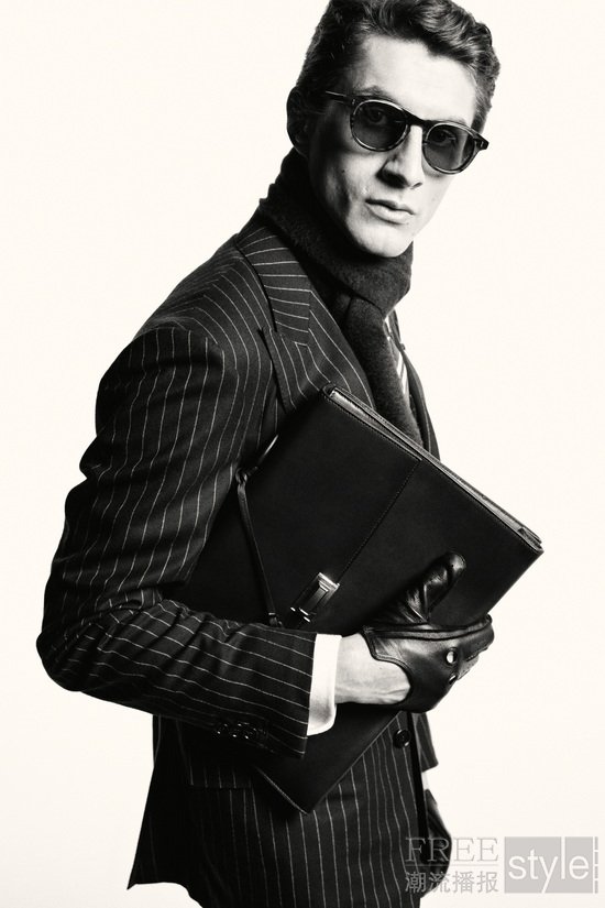 叙事基调再度转入深邃,整体设计显露愈发深沉的电影张力。冬日暖棕与炭黑色的窗格纹或细条纹裁剪款式,搭配多层叠穿的超细翻领羊绒衫、斜纹衬衫与围巾,于氛围转折间映射绅装华贵气度。