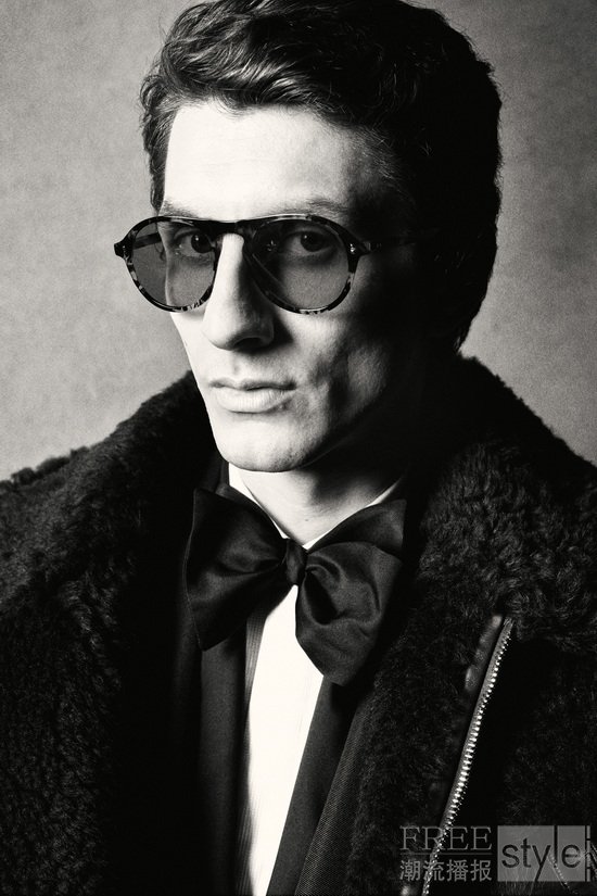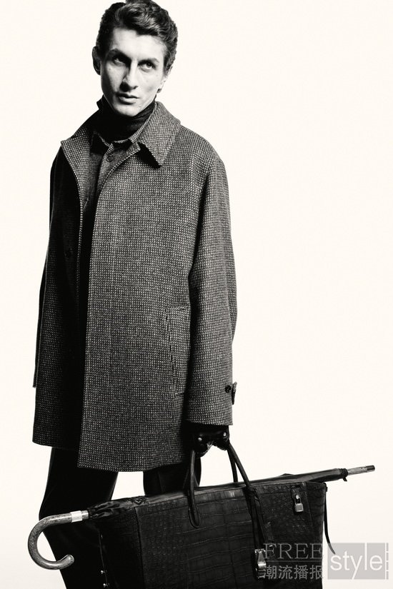 晚装篇章延续经典奢华格调,诠释正装典范。高领扣款双排扣天鹅绒晚礼服夹克、Barathea羊毛长礼服外衣以及午夜棕、蓝色与黑色无尾礼服,与粗犷的皮毛一体飞行员夹克、色调浓郁的羊驼呢汽车大衣等飒爽奔放的外套叠穿混搭。