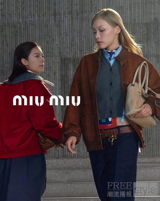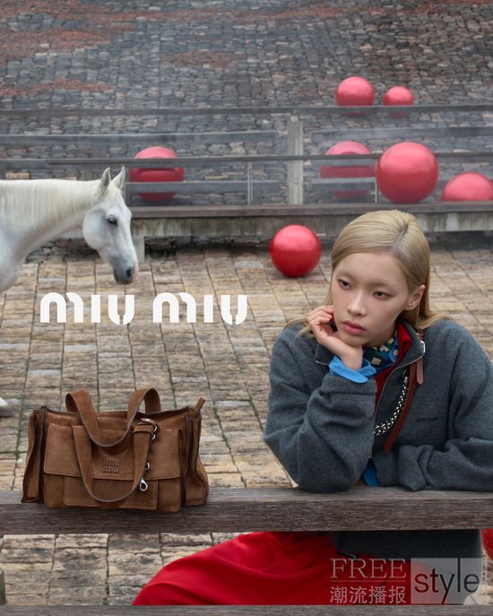 Miu Miu 2026新春系列传递出乐观、自由的态度,与节日的新生气息共鸣。廓形在结构与舒适间取得平衡:拉链夹克、大廓形连帽衫、缩小版针织衫、及膝百褶裙或伞裙、结构感长裤、叠穿吊带以及露肩连衣裙。色调从灰、棕、藏青、黑、白延伸至象征吉祥富贵的正红色。核心手袋款式涵盖Wander、Arcadie、Aventure、Pocket系列,采用做旧软羊革、绒面软羊革及Matelassé皮革材质,除经典色调外,更推出金属银与新春红配色。