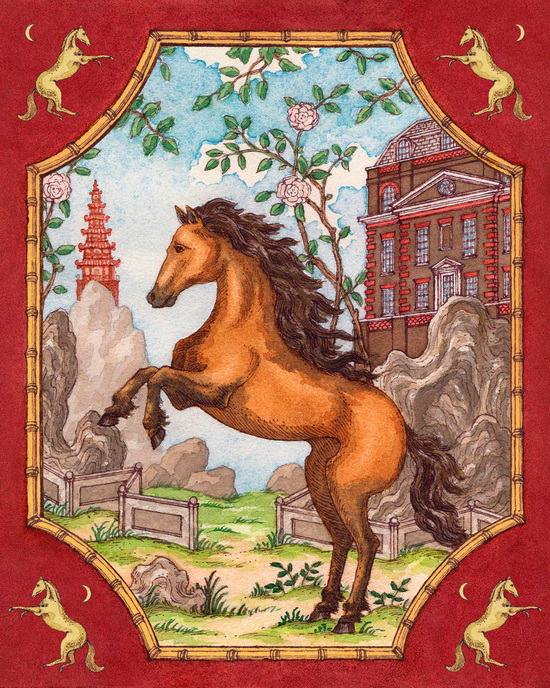 与上述作品一同亮相dunhill 2026马年新春限定系列大片的,还有两幅专为佳节创作的精美主题插画,插画将马置于精心描绘的场景中:中国名山古刹间的优雅踱步,伦敦dunhill旗舰店Bourdon House前的昂首英姿。画面细节华美繁复,恰与系列单品的卓越匠艺相映生辉。