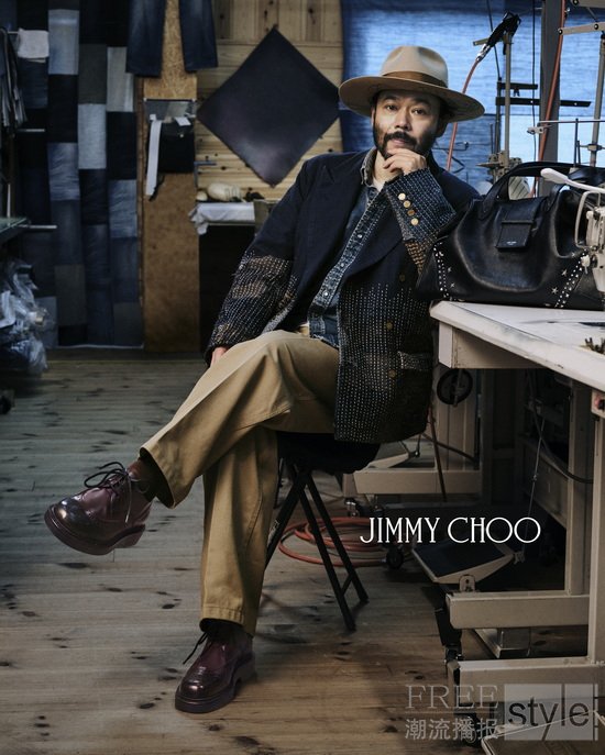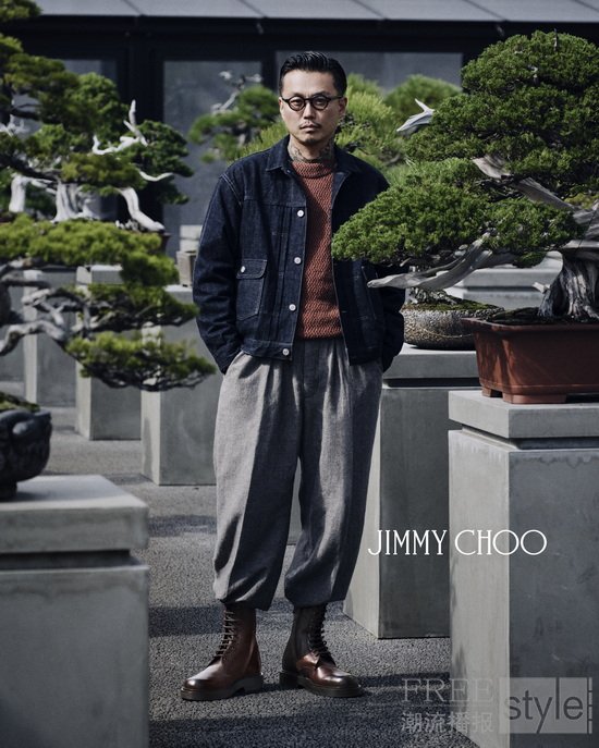 受邀创作者之一的"Poggy"小木基史穿着 ROWAN 德比鞋出镜。作为享誉全球的时尚策划人及 Dear Boro 品牌创始人,Poggy 巧妙融合日本传统工艺与现代文化,在不完美中寻找美感,在创新中追求平衡。他的视角深刻影响了本系列的设计,并确立了其作为 Jimmy Choo 男士时尚风格顾问的角色,与品牌创意总监 Sandra Choi 携手合作,共同打造男士系列。