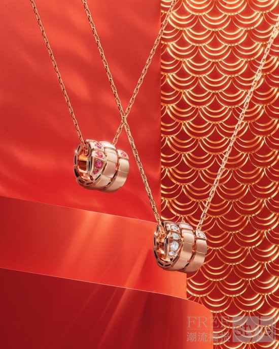 与这款马年新春献礼之作相得益彰,宝格丽的经典设计语言亦焕发熠熠节庆光彩。作为品牌对神秘灵蛇意象的凝练诠释,Serpenti Viper系列新春特别款以精致红宝石点缀其间,传递新岁繁盛、幸福绵长的诚挚祝愿。温润的18K玫瑰金勾勒出灵蛇鳞片的动人姿态,化作诠释蜕变新生与自信优雅的永恒象征。此次新作包括一款单圈手镯,以及一款臻美的18K玫瑰金项链,其吊坠生动呈现出灵蛇蜿蜒盘绕的曼妙身姿。