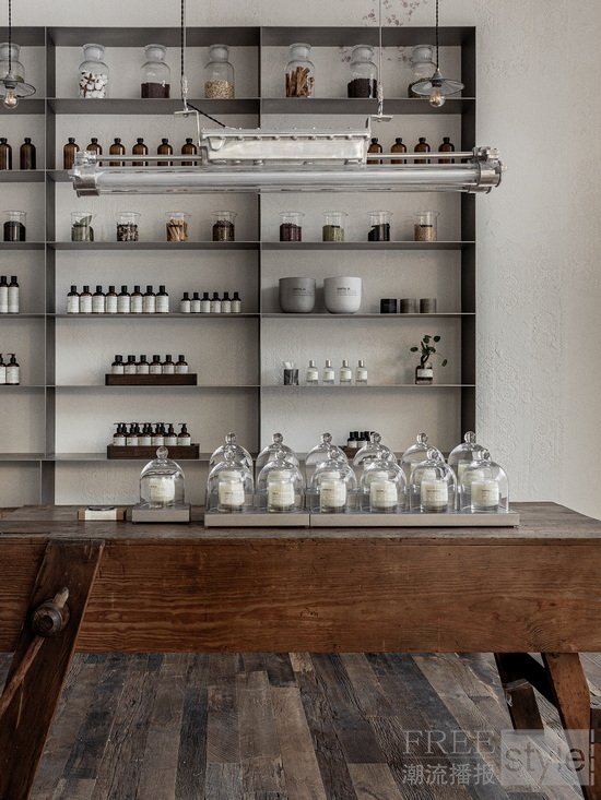 全新香氛实验室位于杭州湖滨银泰in77,不同于以往香氛实验室的设计体系,以明亮开阔,具有呼吸感的现代质感,回应杭州的包容与淡雅。外立面与内部陈列架均采用复古浅色金属材质,搭配通透落地窗;特别引入混凝土材质水槽,并采用白色艺术涂料及手工砖打造复古墙面,粗粝质感呼应标志性侘寂之美,与现代风格达成微妙平衡;漫步其间,经典香氛、香氛身体、家居香氛、全身护理与复古理容系列作品悉数陈列于中古家具之上。