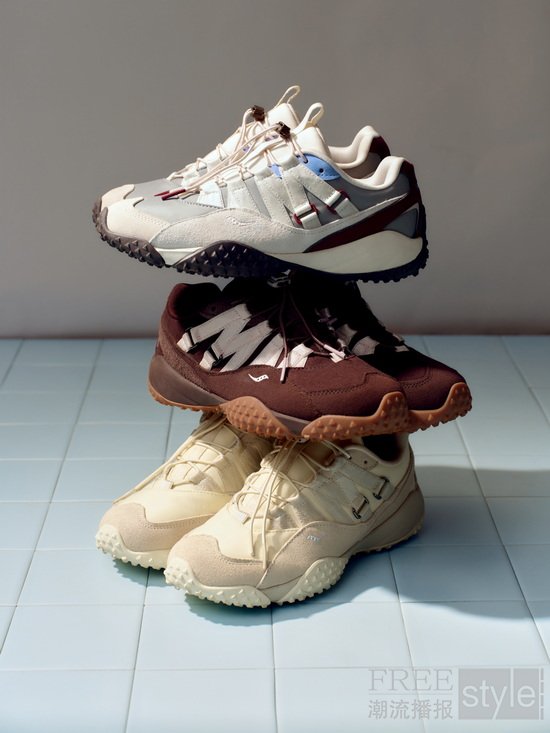 SURGE SPIKES 80S 系列共推出三款配色方案,分别以低饱和的棕色、米白、青灰作为主色调,搭配浅色系的绑带,通过柔和色系的搭配展现当代女性力量,跳脱固定的风格归类,于日常穿搭中注入属于自己的节奏,跃入自由。