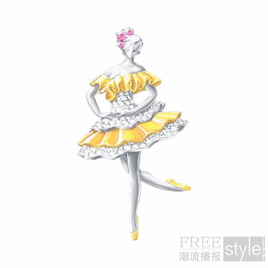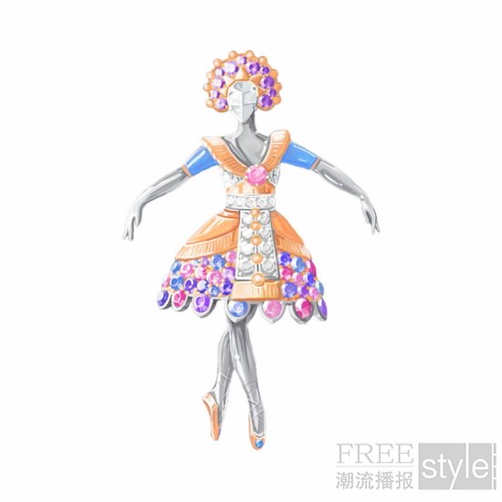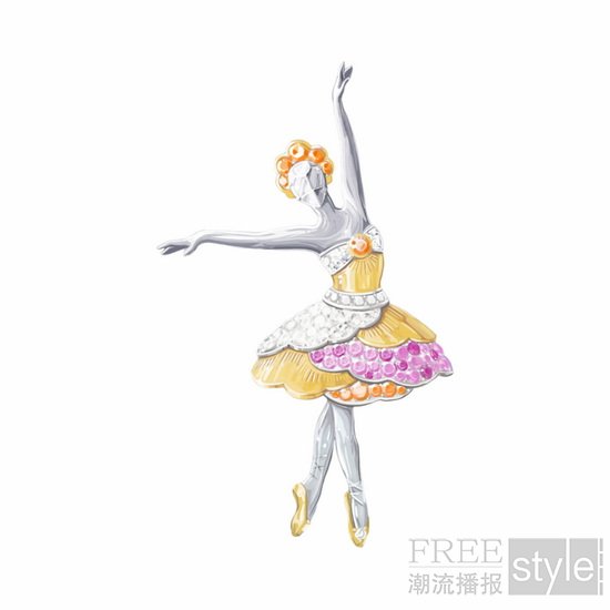 沿袭对舞蹈艺术珍而重之的创作传统,世家优雅呈现12款芭蕾舞伶胸针,致敬经典剧目中不同流派的芭蕾舞。作品与《埃及艳后》(Cleopatra)、《林中仙子》(The Sylph)或《胡桃夹子》(The Nutcracker)等剧目巧妙呼应,芭蕾舞伶纤丽的身姿点缀着设计巧妙、做工精细的舞台服饰。