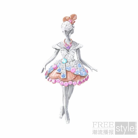 「舞蹈艺术与高级珠宝存在诸多共通之处。对卓越造诣的永恒追求、分毫不差的精准度、对每个动作的诗意表达......Van Cleef & Arpels梵克雅宝的工匠运用多种精湛技艺,巧妙定格芭蕾舞伶翩跹优雅的姿态,将她们的灵动舞姿转化为金质与珍贵宝石的艺术语言。」
