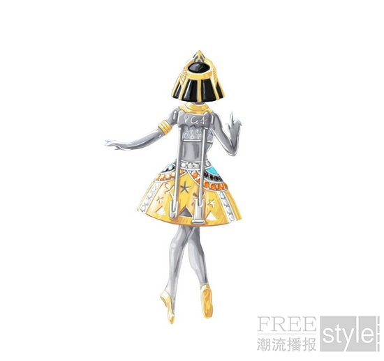 Van Cleef & Arpels梵克雅宝与舞蹈世界的渊源可追溯至1920年代的巴黎。热爱芭蕾舞的路易·雅宝(Louis Arpels)经常带外甥克劳德·雅宝(Claude Arpels)前往芳登广场精品店附近的巴黎歌剧院观赏表演。1940年代初,世家首款芭蕾舞伶胸针诞生,随即成为传世经典。灵动姿态及华丽服饰令一众收藏家为之倾倒。珍贵头饰为舞伶的黄K金或玫瑰形切割钻石镶嵌的面部增添璀璨,配以美钻或彩色宝石的足尖鞋以及飘逸的芭蕾舞裙,优美舞姿活灵活现。Van Cleef & Arpels梵克雅宝的芭蕾舞伶亦反映不同文化自1906年以来对世家创作历程的深远影响。舞者身穿各地服饰,勾勒出南太平洋岛屿以至东方神秘国度的的文化底蕴。