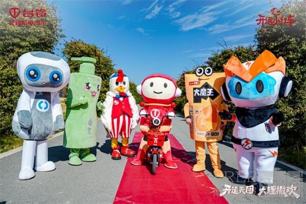 25日当天,台铃IP形象太空人首次公开亮相,携手肯德基奇奇,联合阿道夫天然香、盐津铺子大魔王、荣泰健康阿泰、骇盾新能骇小盾共同组成萌趣十足的品牌IP“开运天团”,和众多达人一起环游大理洱海。