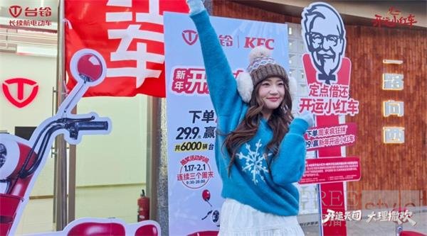 1月24-25日,台铃肯德基联名活动第二个周末,热度再升级!“开运天团”惊喜集结,骑行大理洱海,演绎欢乐名场面;开运小红车线上线下齐圈粉,引爆全网互动热潮,持续释放超强“开运”能量!