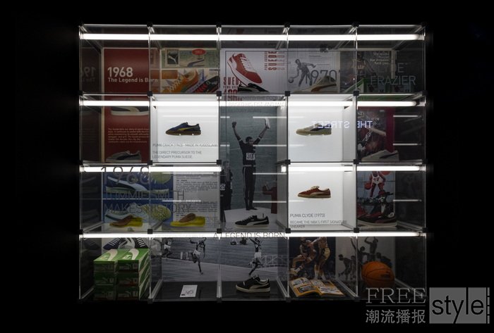 Suede House 以品牌档案、社群文化、音乐艺术及匠心工艺为叙事核心,构建出一系列串联过去、现在与未来的沉浸式环境。展厅聚焦于塑造 Suede 鞋款风格的三大核心文化——篮球运动、90 年代滑板文化及街头潮流,通过概念化的空间布局、艺术装置与精心陈列,将深厚的文化积淀转为多元感官体验。此外,现场特设的档案展区引领参观者穿梭于自1968年至今的时空长廊,见证 Suede 鞋款在时代更迭中持续进化的生命力。
