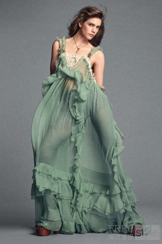 整个系列中,巧妙的比例美学贯穿始终。染色工装与丹宁单品,搭配垂坠皮革巴斯克腰带、柔中带型的针织衫、飘逸衬衫及蕾丝内衣式上衣。长款腰带束紧腰线,勾勒出鲜明廓形,塑造量感同时重新定义比例之美。飘逸感面料为每套造型赋予灵动、松弛与随性风格。与短款皮夹克搭配,让对比尤为明显——流畅感和利落结构,光泽质感和哑光肌理,透色和实色。于张力之间,Chloé独有的品牌格调得以呈现——性感、自信、低调别致,色彩成为自我表达的载体。浓郁的基础色与鲜活亮泽的色调,为Chloé标志性的裸色、杏色、米白色与藏青色系焕新添彩。柔和玫瑰粉和开心果绿,与宝蓝、琥珀等宝石色调交织,营造出意想不到的和谐配色。肌理与比例的精妙契合,打造出舒适与独具Chloé风格的穿搭造型。