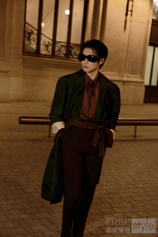 演员魏大勋身着SAINT LAURENT圣罗兰2026夏季男士系列桑蚕丝风衣、缎面上衣、长裤、桑蚕丝塔夫绸领带,STANTON光面皮革德比鞋,并佩戴SL 901 HOWL太阳眼镜,出席SAINT LAURENT圣罗兰2026冬季男士时装秀。