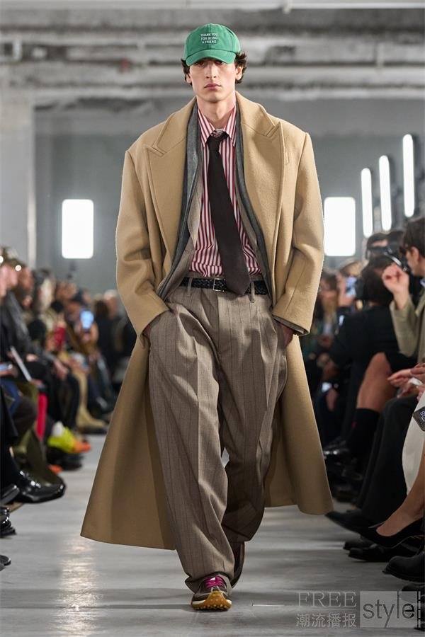 男装通过对比塑造张力,将修长宽阔的线条与更为精短利落的剪裁巧妙结合;女装则采用更具结构感的设计思路,将量感集中于髋部,同时保持整体造型的流畅性与易穿性。外套设计延续经典风格,强调品质与经久魅力。