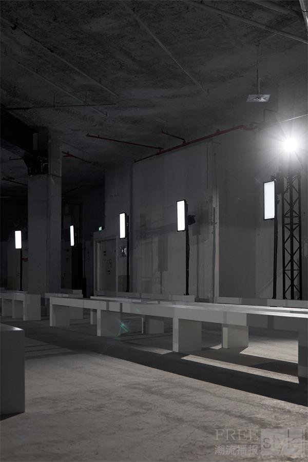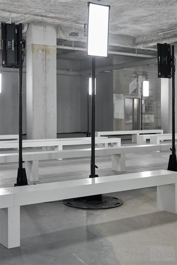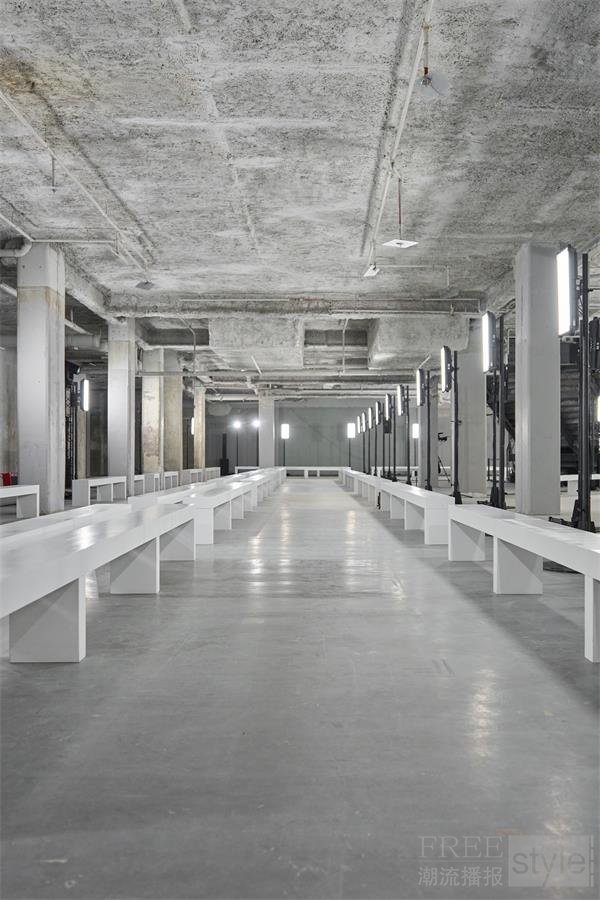观众席紧邻T台与行进中的模特,以便宾客尽可能近距离地欣赏服装的面料与细节,增强系列本身的自我表达。