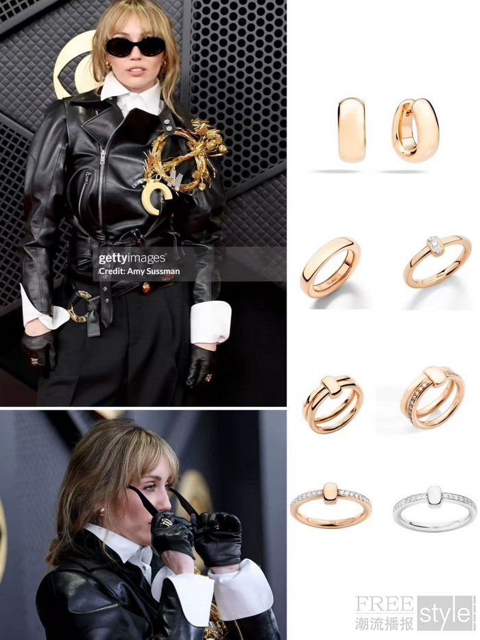 麦莉・塞勒斯(Miley Cyrus)佩戴Pomellato宝曼兰朵Iconica系列耳环、戒指及Pomellato Together系列戒指