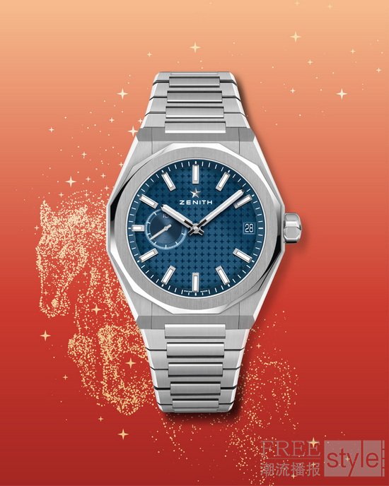 马年精神在于一往无前的奔腾。ZENITH真力时DEFY巅峰系列天际计时码表,以蓝色太阳纹表盘映耀天穹,腕表沿袭El Primero星速机芯经典布局——三个交叠计时盘与4点30分日期视窗,清晰指示新年时刻的分秒变换。表圈十二面凸缘环饰有1/10秒刻度,其精准韵律犹如骏骥驰骋,在生活的疆场上,伴随佩戴者从容驰骋,一往无前。