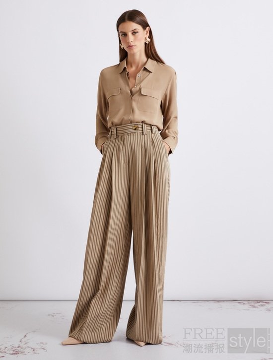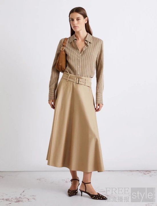 品牌将矿物色调融入标志性大地色系阵营,以温润细腻的矿物肌理打造兼具高级质感与松弛氛围的穿搭选择,恰如独立女性的内心世界——笃定从容,自带光芒,无需外物衬托。西装单品以简约的两粒扣设计与廓形剪裁定义自我风格,采用羊皮绒面革与弹力帆布面料诠释气场;内搭的卡其色针织衫优选桑蚕丝混纺面料,柔软亲肤,丝滑透气;下装无论是搭配优雅挺括的卡其色半身裙还是质感出众条纹休闲裤,都能将自信气场淋漓尽显。同色系的叠穿法则无时无刻不在传递MARELLA女性的从容自在的魅力。