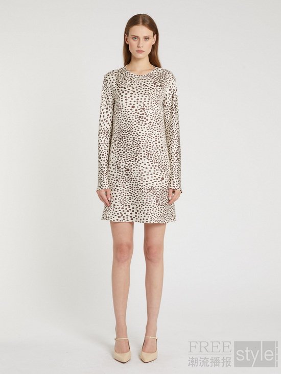 摆脱浮夸与张扬的标签,MARELLA本季以极简手法重塑这一经典元素,巧妙平衡野性张力与优雅质感,勾勒出专属于成熟女性的豹纹美学,使其不再是刻意博取目光的装饰,而是女性气场的自然延伸,更是自我态度的无声彰显。这份从容气度的诠释,离不开精准贴合身形的剪裁巧思:100%桑蚕丝衬衫采用利落修身廓形,挺拔肩线勾勒身姿曲线,流畅线条自带干练格调。豹纹印花连衣裙选用真丝斜纹面料,丝滑垂坠却不失挺括度,剪裁贴合身形却不束缚,延续品牌所倡导的轻盈自在的生活方式。