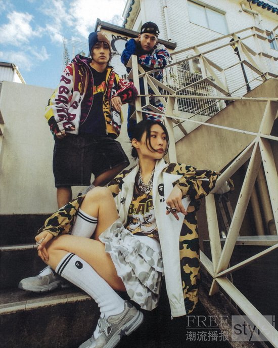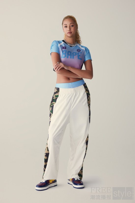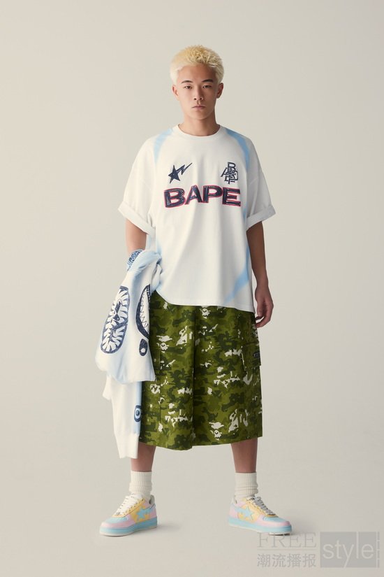男女装系列共同彰显了BAPE®持续突破边界的决心,将传统运动美学打造为独具都市格调的先锋时尚。这已非传统意义上的运动服饰,而是经由BAPE®无畏的街头视角重新定义的运动典范——运动成为身份认同的象征,运动精神化身为自我表达的平台。