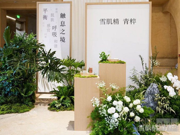 为直观诠释雪肌精青粹的护肤理念,活动现场以绿植与原木为核心元素,于城市中心打造一方自然绿意的休憩空间。视觉设计紧密贴合“东方、自然、美学”三大关键词,原木的温润与绿植的鲜活相映成趣,简约线条与自然肌理共构静谧氛围。现场不仅成为嘉宾拍照打卡的热点,更让人在步入瞬间即可感知“呼吸与平衡”带来的松弛感,将抽象的东方护肤哲思,化为可看、可触、可感的具象体验。